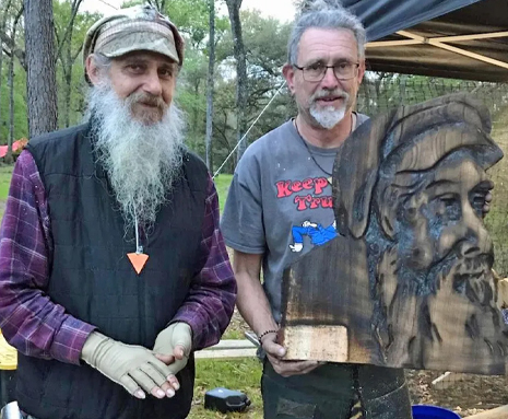 Ziggy Sawdust joins us from Woodstock, Virginia. He is a chainsaw portrait carver, renowned for his intricate and detailed portrait work.