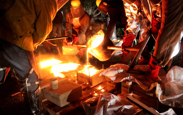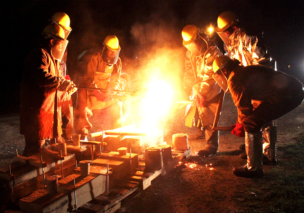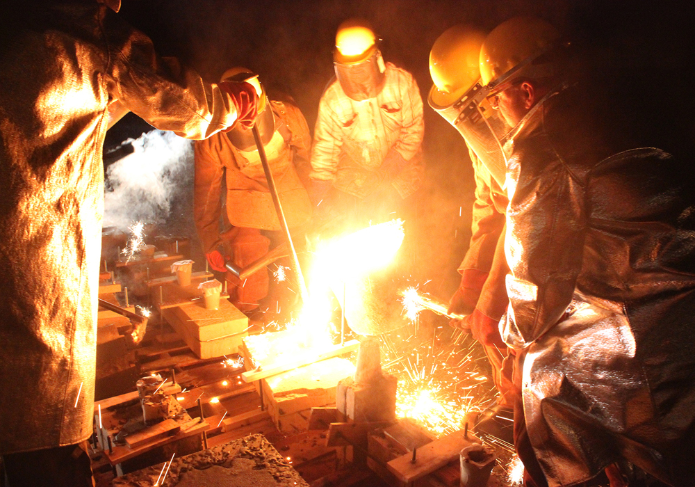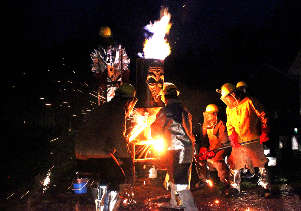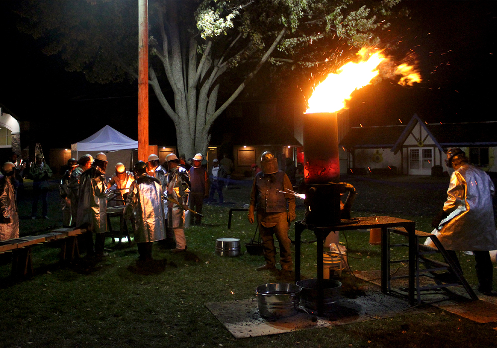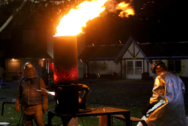 In 2018, the Frankenmuth Arts Council hosted its first iron pour by contracting Ironhead and their casting crew from the Minneapolis/St. Paul area. They traveled to Frankenmuth with their portable furnace and equipment, conducting a two-day pour during Country Fest in Heritage Park. The success of this event sparked what would become the Frankenmuth Fire Arts Festival.